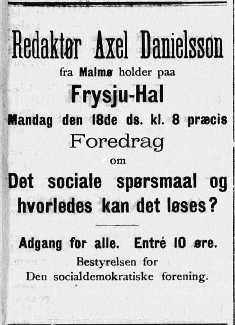 Det finnes to bilder tatt av Wilse i 1904 som viser Frysja-hallen, men det betyr jo ikke at det så slik ut da Thrane holdt møte der mer enn 50 år tidligere.